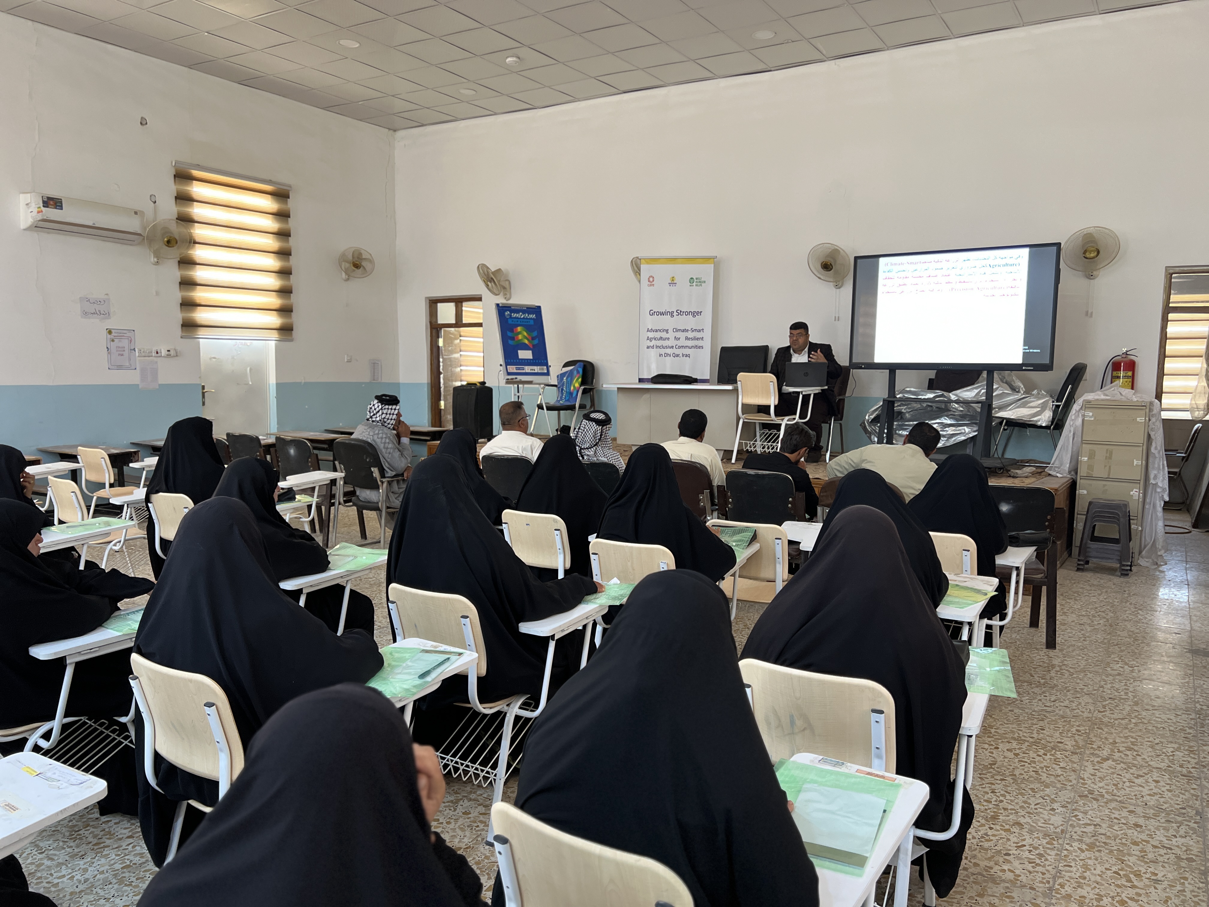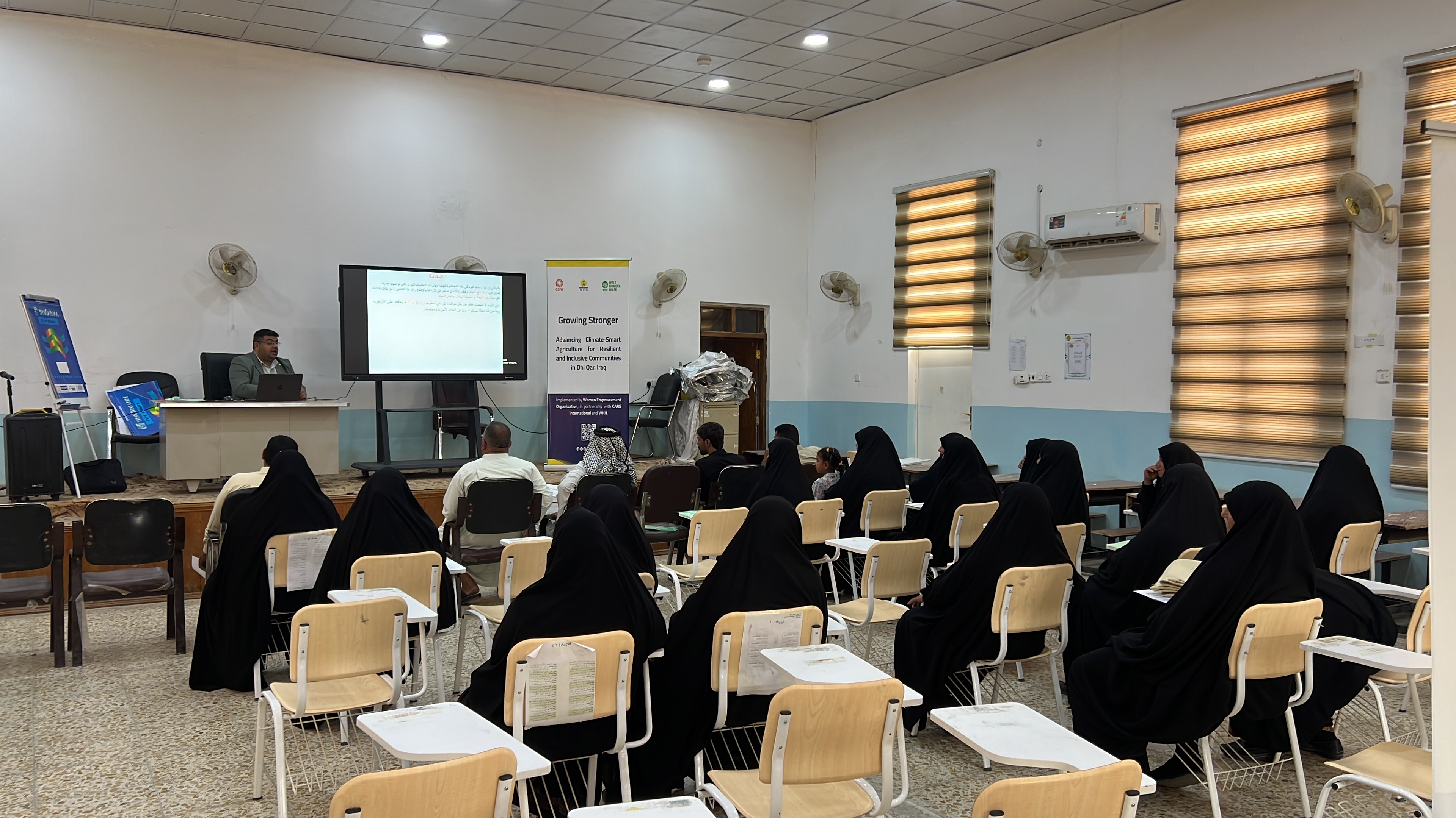 Women Empowerment Organization (WEO), in partnership with CARE Iraq and Welthungerhilfe (WHH), is implementing the project “Growing Stronger: Advancing Climate-Smart Agriculture for Resilient and Inclusive Communities in Southern Iraq – Dhi Qar.” Through hands-on training and capacity-building, farmers, especially women, gained the skills and knowledge in Climate Smart Agriculture to adopt sustainable farming methods that boost productivity while ensuring long-term resilience.The training focuses on practical solutions to tackle challenges such as water scarcity, soil salinity, and the need for sustainable resource management, paving the way for stronger, greener communities in Dhi Qar.