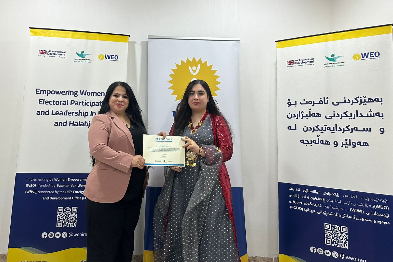 Women Empowerment Organization (WEO) successfully organized the sixth peer support network meeting in Halabja under the “Empowering Women for Electoral Participation and Leadership in Erbil and Halabja” project, with funding provided by Women for Women International (WfWI), supported by the UK’s Foreign, Commonwealth and Development Office (FCDO). The meeting aimed to build a long-term, sustainable support system that empowers women leaders to continue their participation in electoral processes and voting with confidence and resilience.