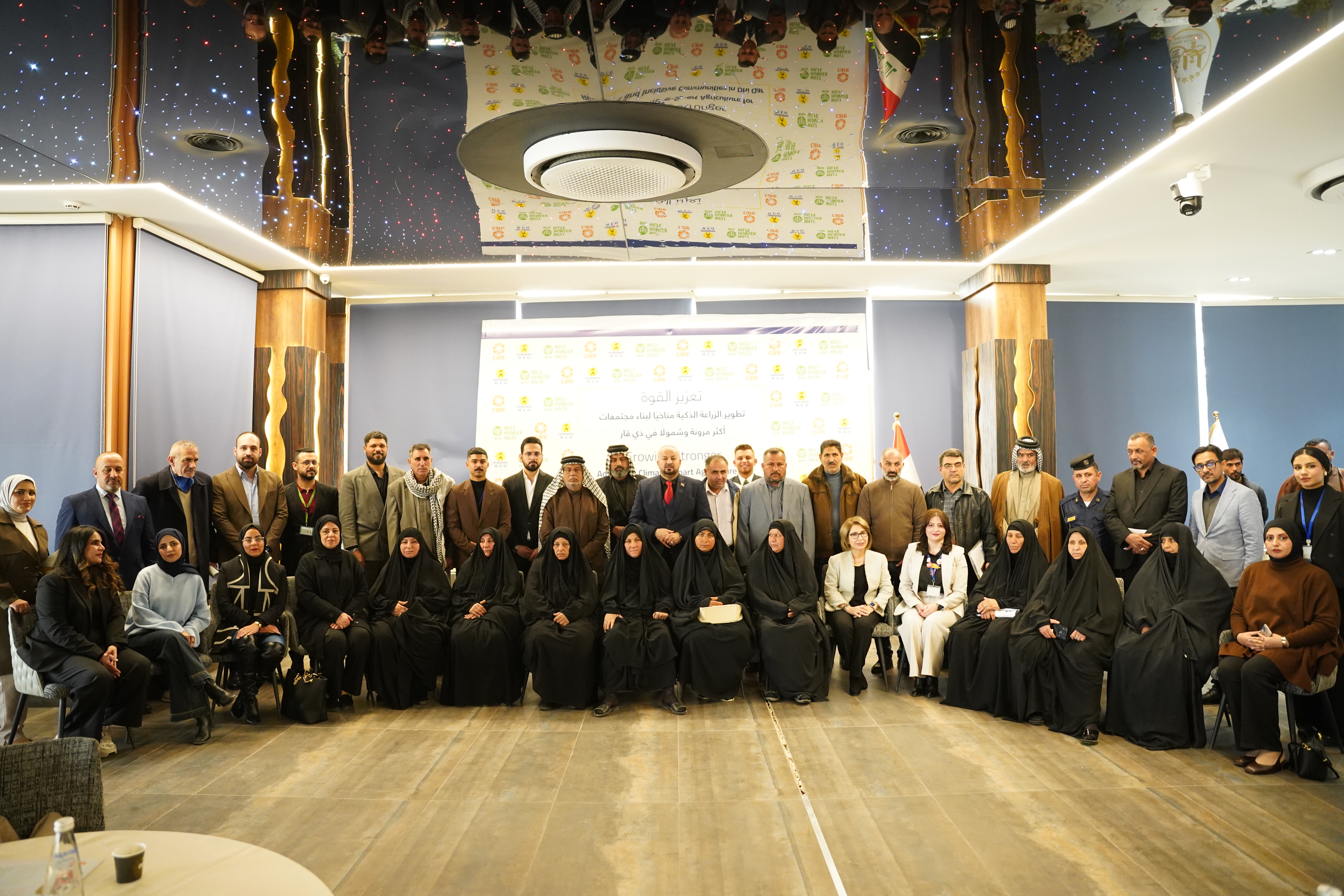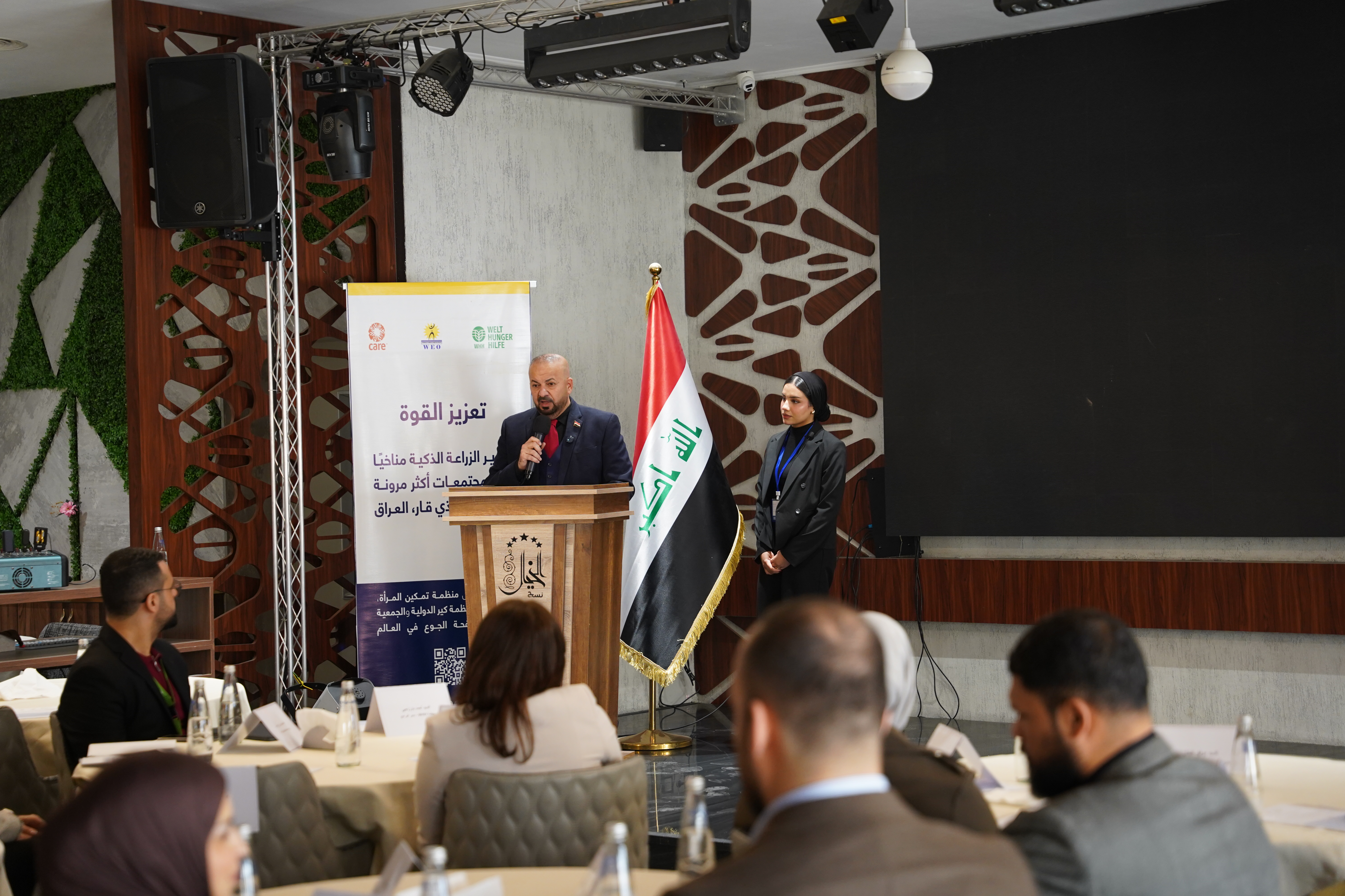 Women Empowerment Organization (WEO), in partnership with CARE Iraq and Welthungerhilfe, held the project’s closing event for the “Growing Stronger Advancing Climate Smart Agriculture for Resilient and Inclusive Communities in Dhi Qar.” The event was attended by institutional stakeholders, led by the Governor of Dhi Qar, Mr. Haitham Al-Hamdani, alongside representatives from the Directorate of Environment, the Directorate of Agriculture, and the Women’s Affairs Department of Dhi Qar Governorate, in addition to several relevant entities and Civil Society Organizations.The event featured a presentation of the project’s key achievements in promoting climate-smart agriculture and supporting targeted women and men farmers to build more sustainable livelihoods and strengthen their ability to adapt to climate change. It also highlighted the challenges encountered during implementation and the lessons learned that can inform similar future initiatives. The event concluded with the presentation of appreciation to the institutions and partners who contributed to the success of the project, in recognition of their role and collaboration in supporting its objectives and achieving tangible results on the ground.